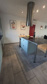Des murs texturés à l'enduit, une cuisine à bout de souffle, une chaudière visible... Voici ce que la cliente ne voulait plus. Les travaux étant à réaliser à moindre coût, nous avons opté pour l'adaptation d'une cuisine démonté dans la famille de la cliente afin d'en limiter le coût complété par de nouveaux plans de travail.